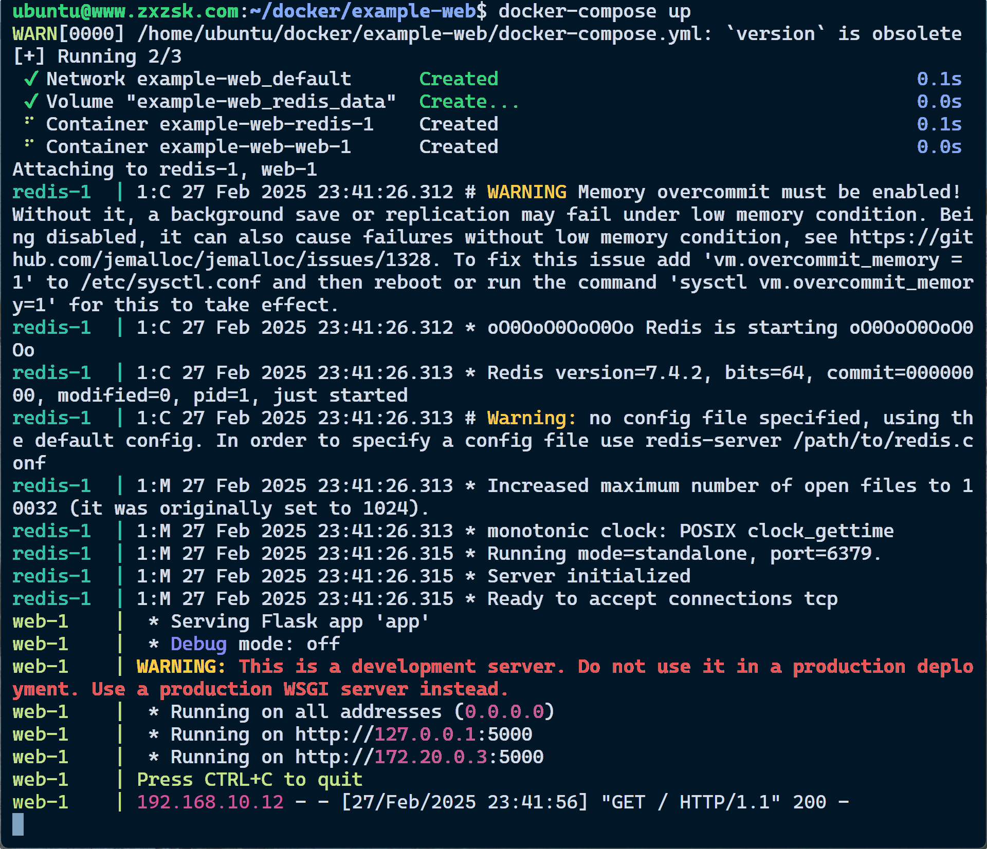 WARN[0000] /home/ubuntu/docker/example-web/docker-compose.yml: `version` is obsolete