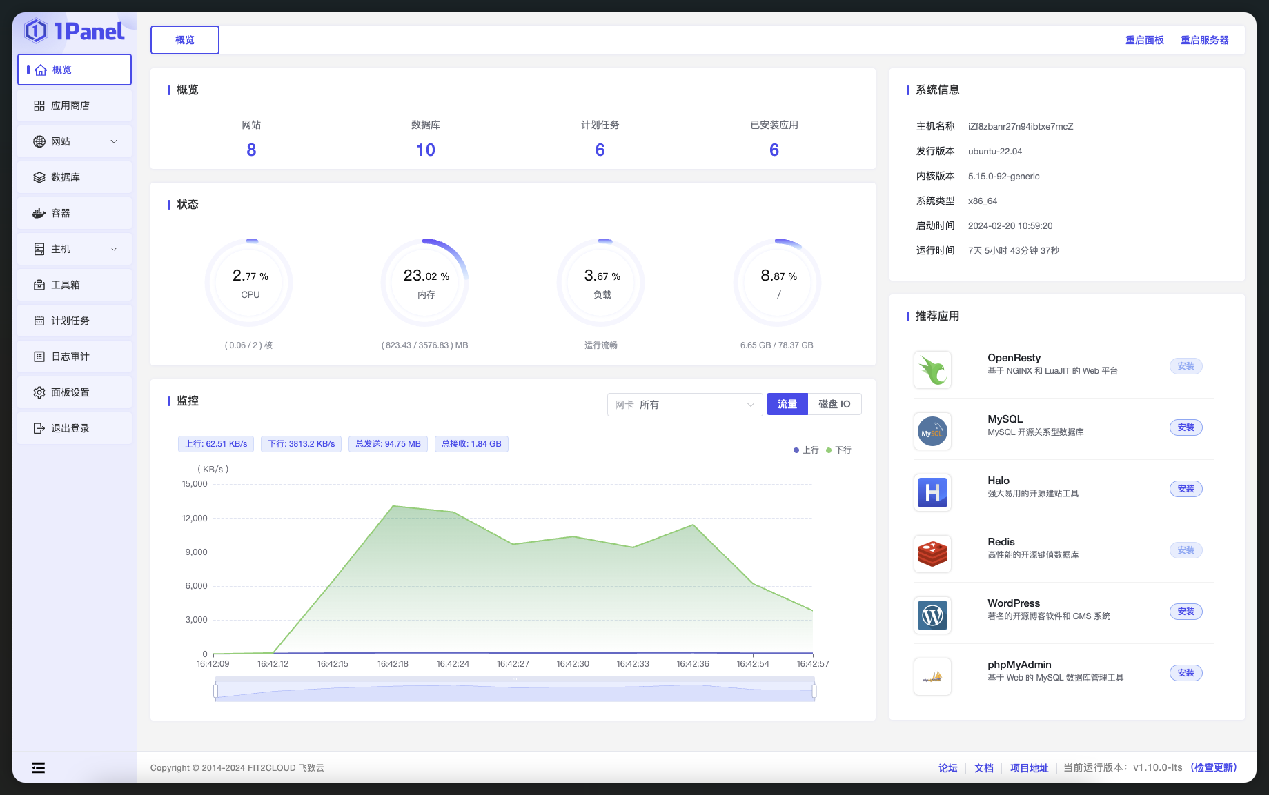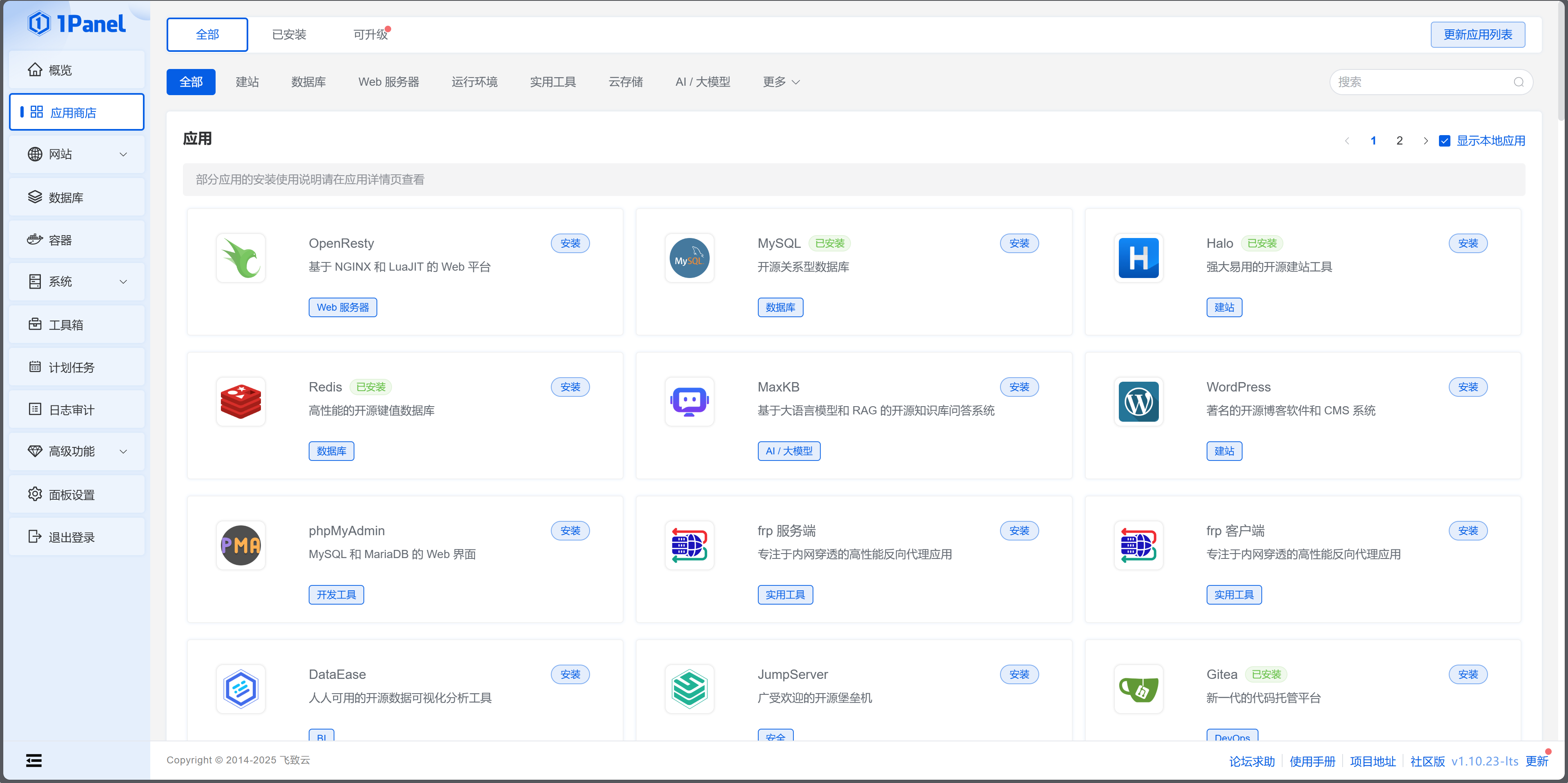 Docker入门教程Docker管理面板01-1panel01-1panel1Panel 是新一代的 Linux 服务器运维管理面板。用来管理服务器和 Docker 容器都不错。 商店提供了一百多个 Docker 应用。