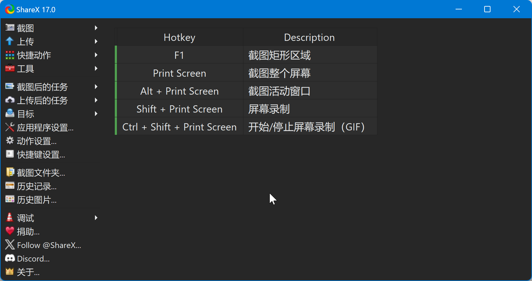 Winsows入门教程其他Sharex截图工具本页总览Sharex截图工具当前需求 截图后自动上传图床,选择方案 ShareX,弃用方案 PixPin + Typora (存在 Bug)。 Sharex 简介 一款开源、免费、功能丰富的截图软件,支持 Windows,不支持 Linux。 访问官网:ShareX 安装 从 Microsoft Store 安装 ShareX。 截图快捷键