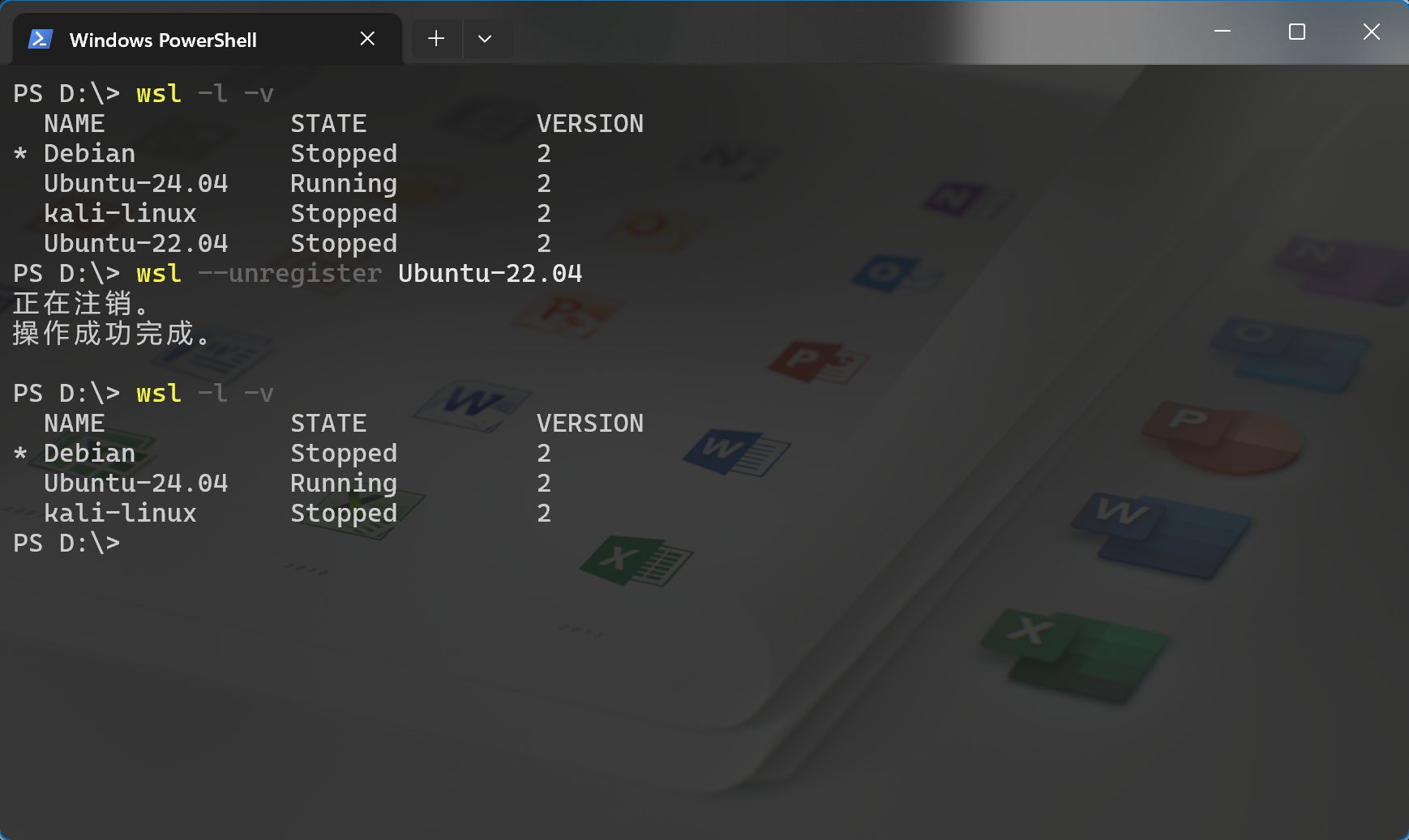 wsl --unregister <名称> | 注销并删除子系统 |