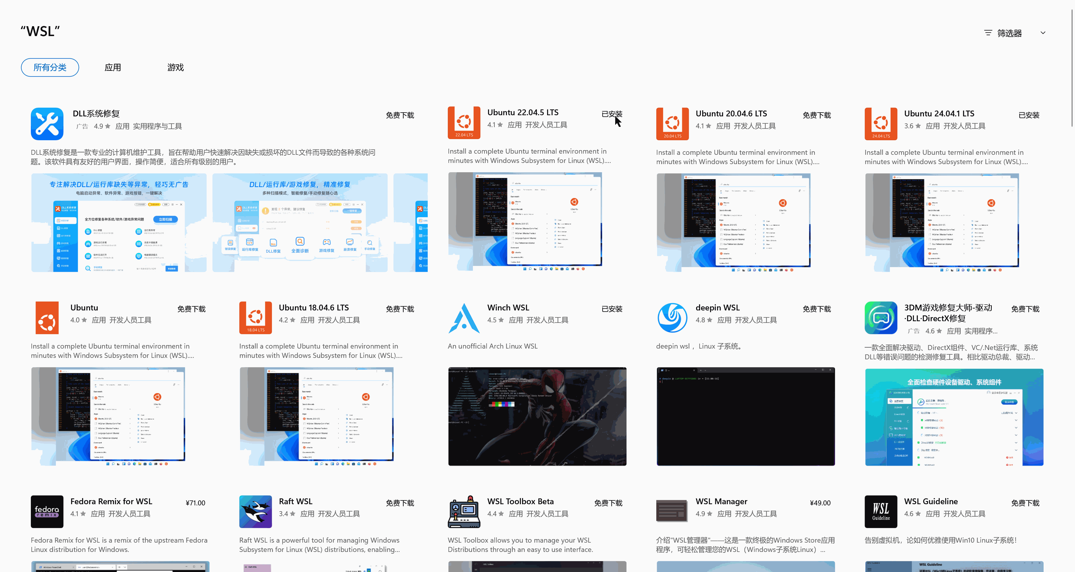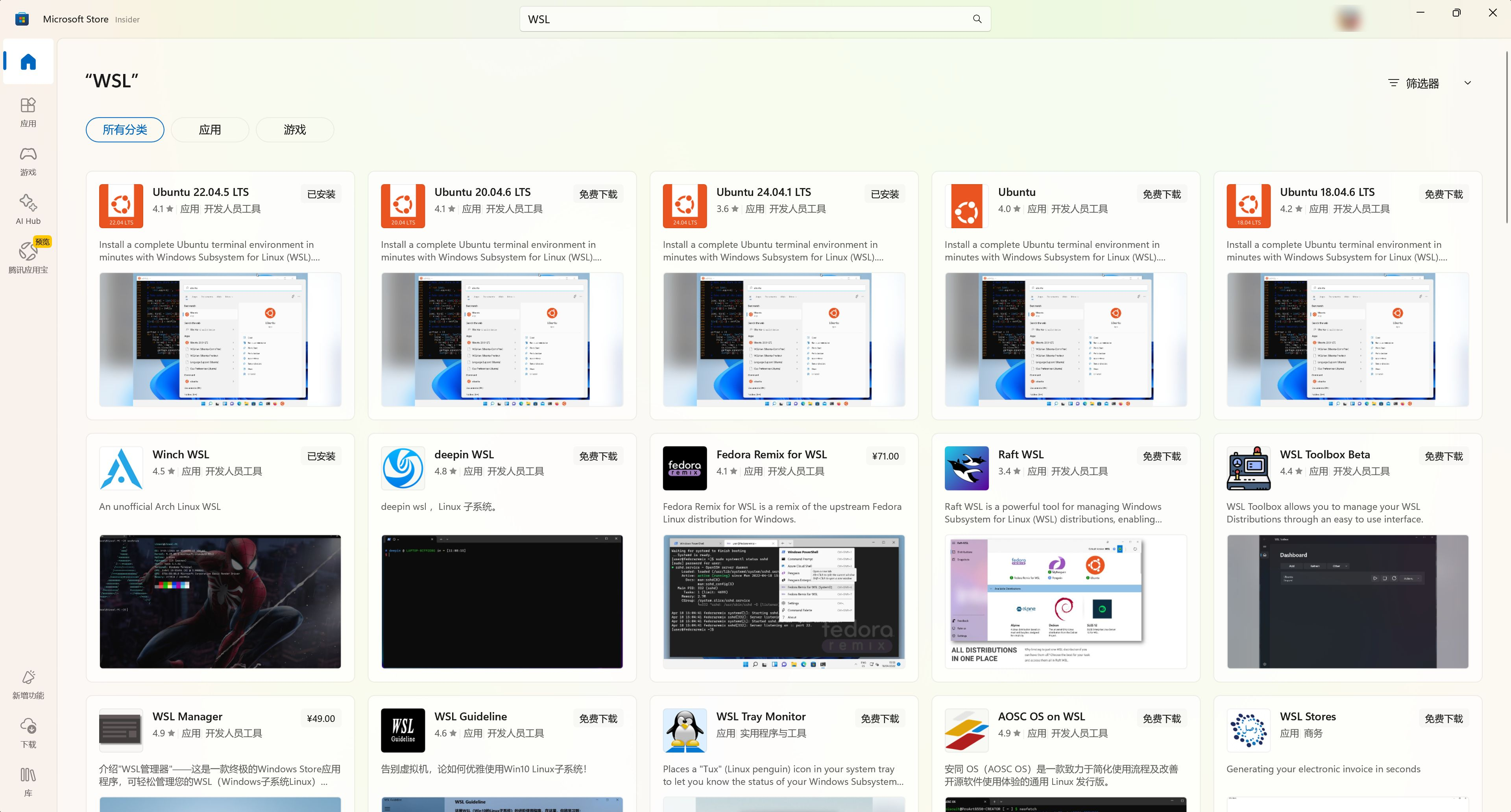 你可以从应用商店(Microsoft Store )搜索并安装任意 Linux 发行版,如:
