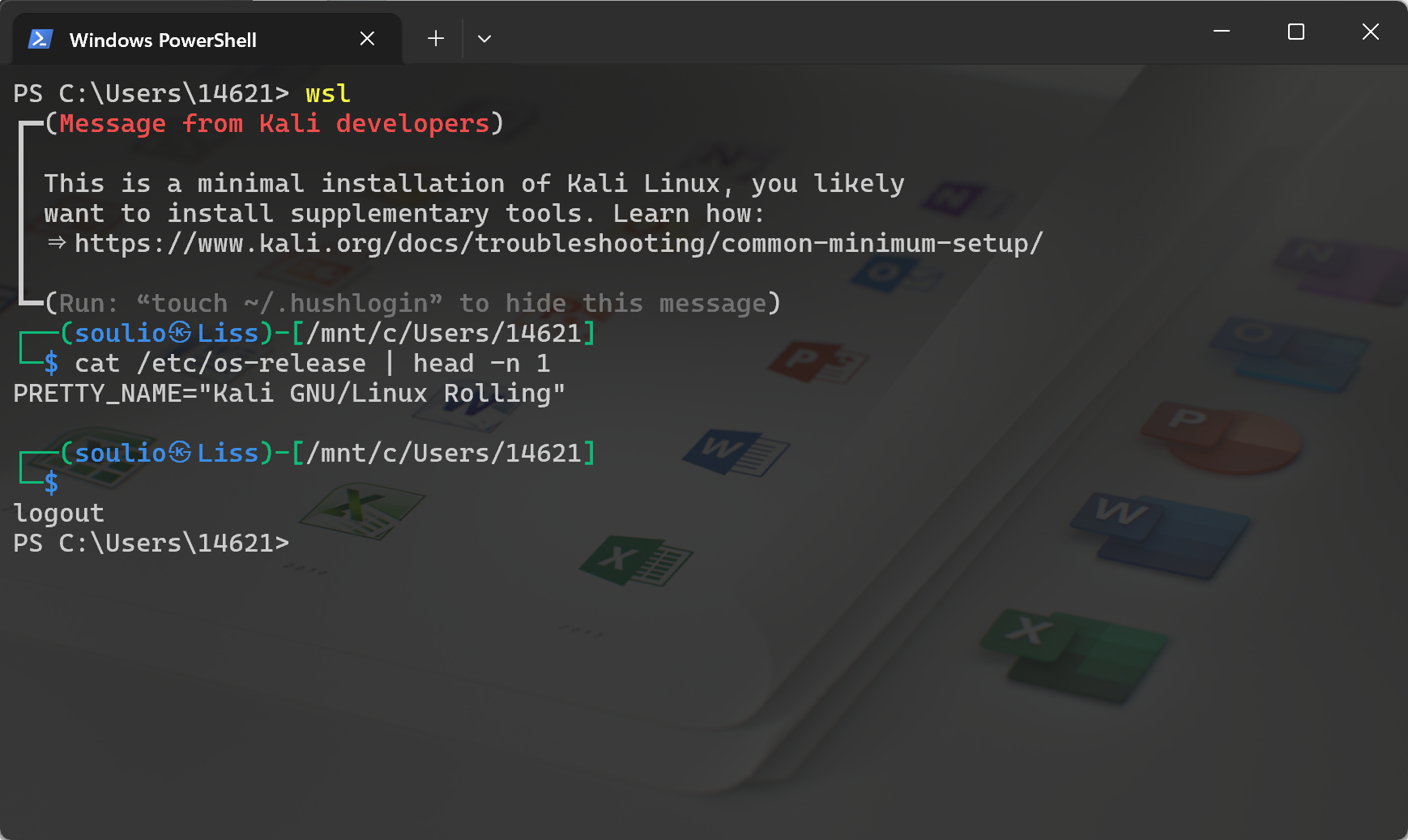 在 powershell 中运行 bash 或 wsl 命令进入默认 WSL,按 Ctrl + D 退出。