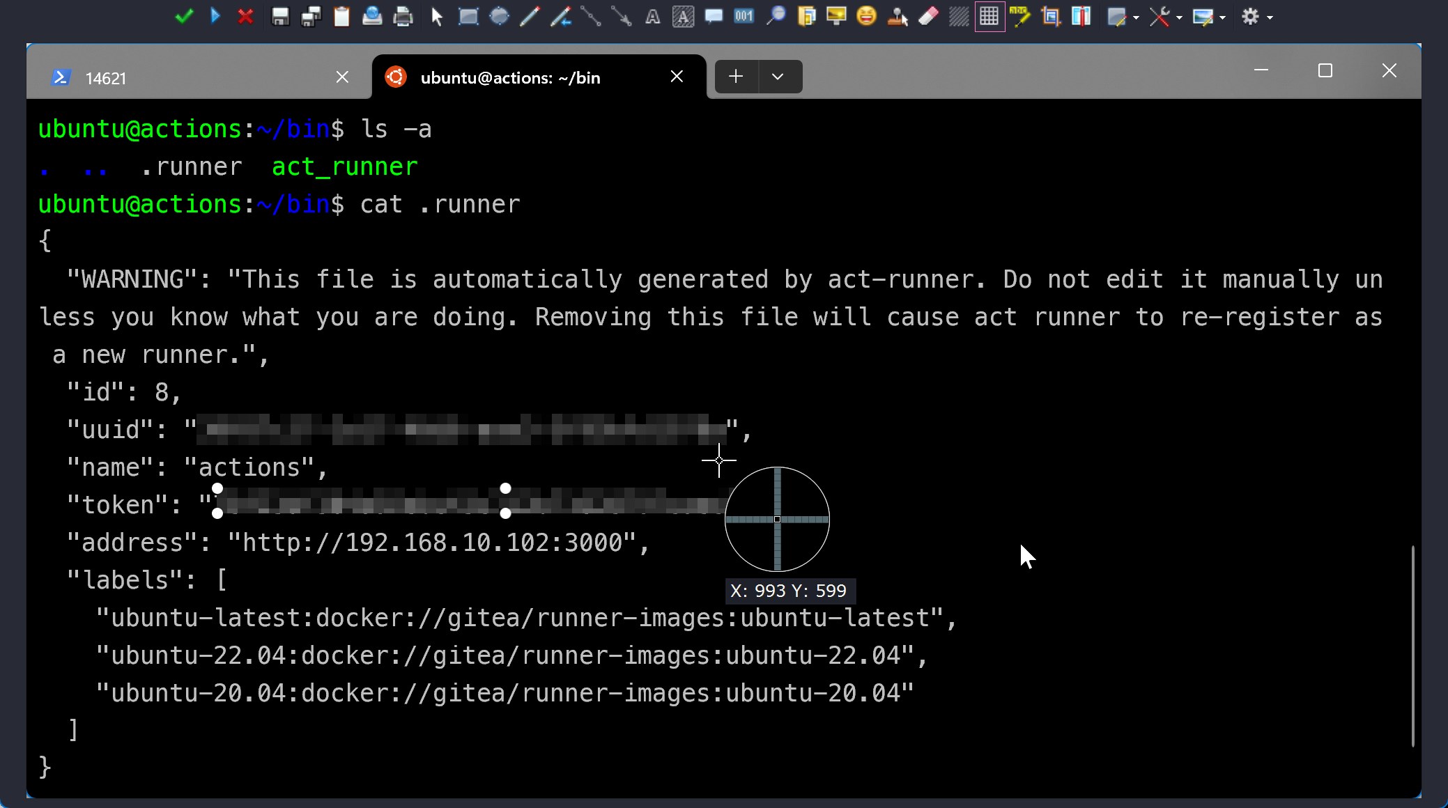 回到 Actions 服务器,你是否注意到,当前只是以终端命令的方式启动 act_runner: