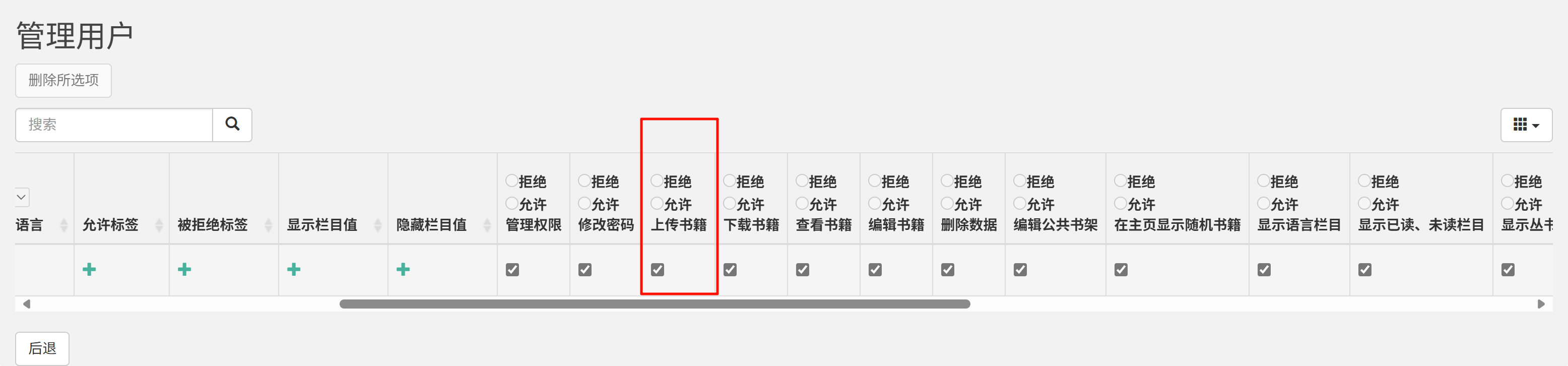 用户设置 中启用上传权限