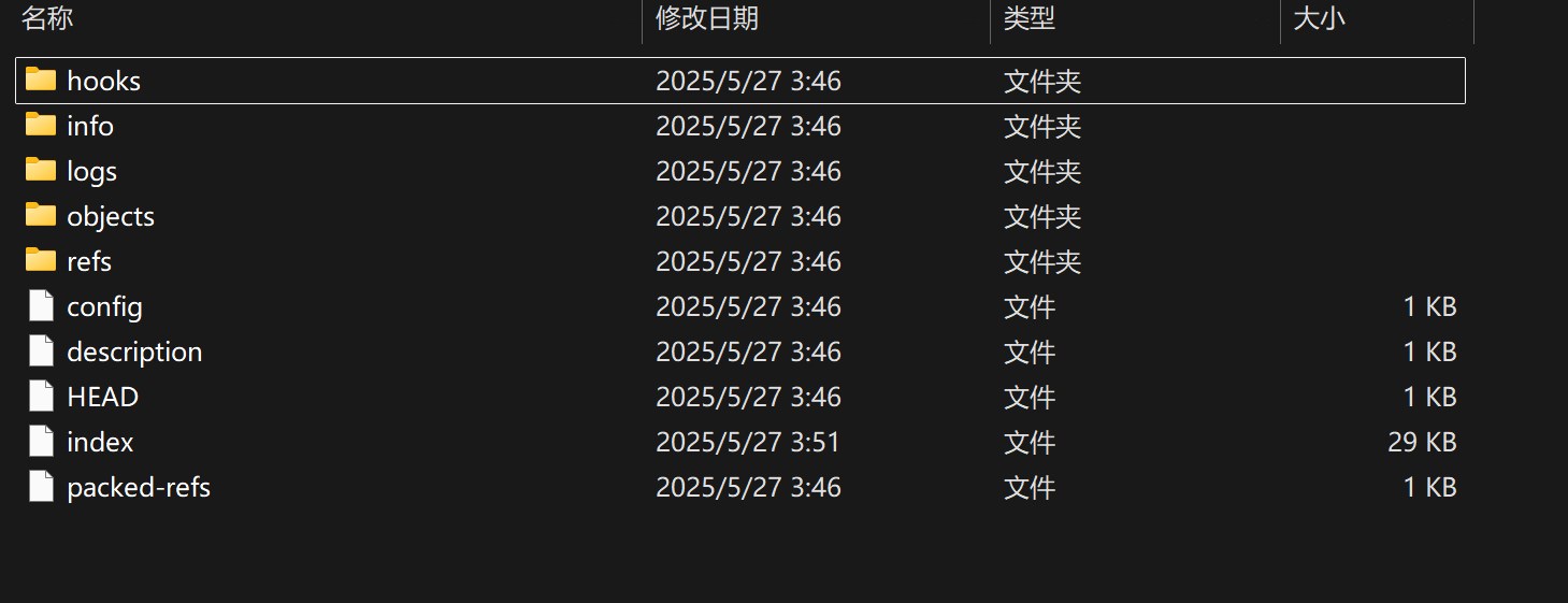 .git 目录记录快照和配置信息,它是 Git 自动生成和管理的。请勿删除和编辑其中文件!