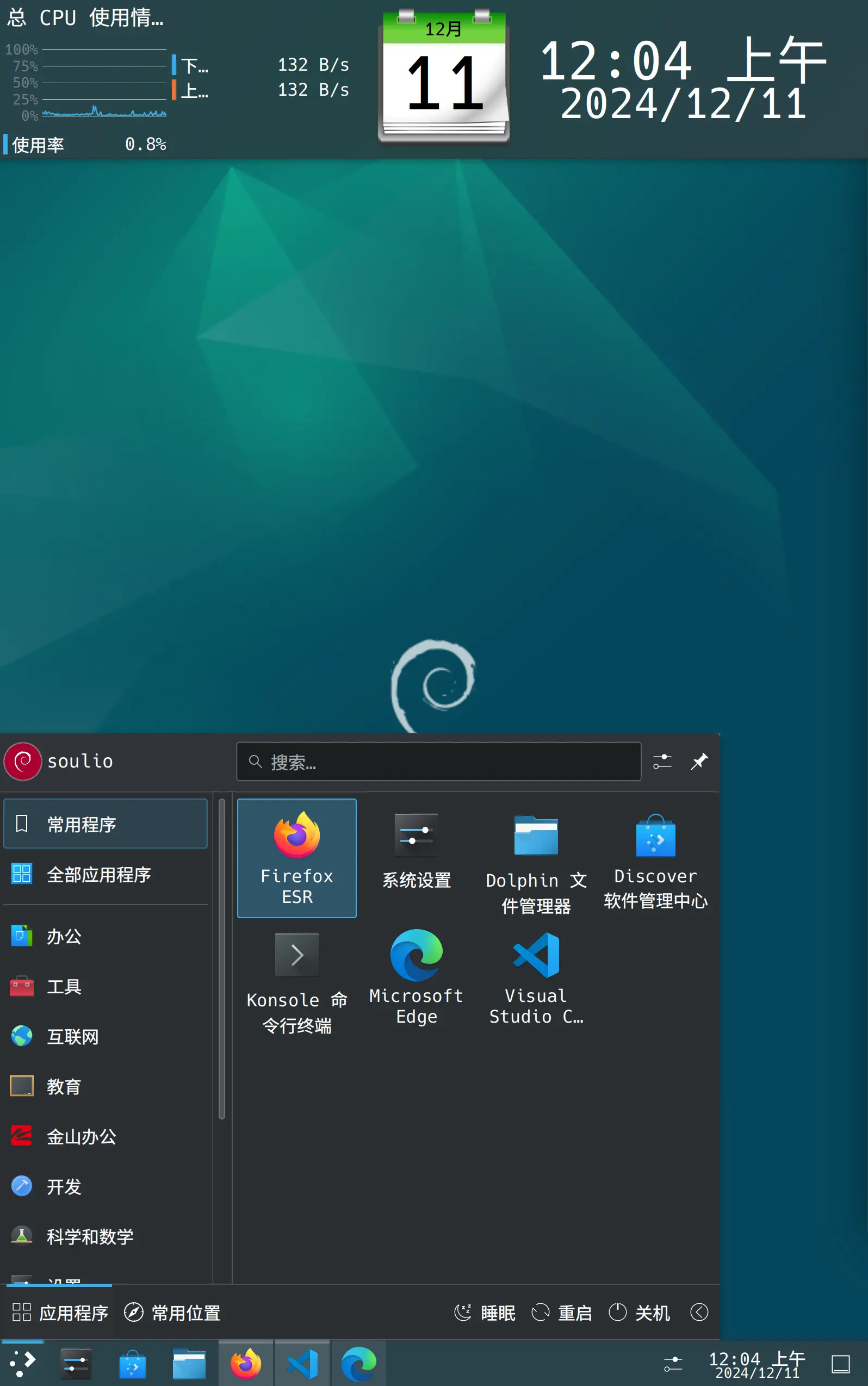 Linux桌面使用体验Debian12使用体验本页总览Debian12使用体验桌面环境 环境: KDE 桌面 + Debian12 系统 UI 风格类似 Windows。 软件生态 许多经典好用的 Windows 软件用不了,对我造成影响的主要有: 表格:Excel 截屏:PixPin 稳定性 bug 还是挺多的: 尝试了多款截图软件,只有自带的能够完美运行,但是功能较少。现在用 snipaste,虽然快捷键时灵时不灵,粘贴到剪贴板也只能使用 png 格式(占用空间大)。 obs 录屏,快捷键不灵。