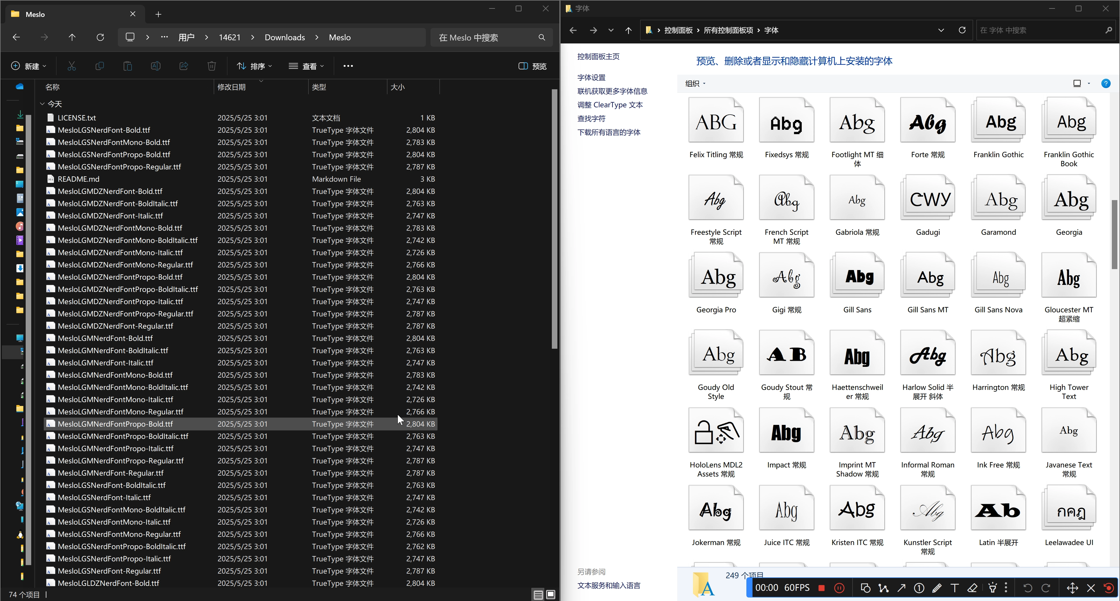 挑选和下载 Nerd 字体,解压缩,安装字体。