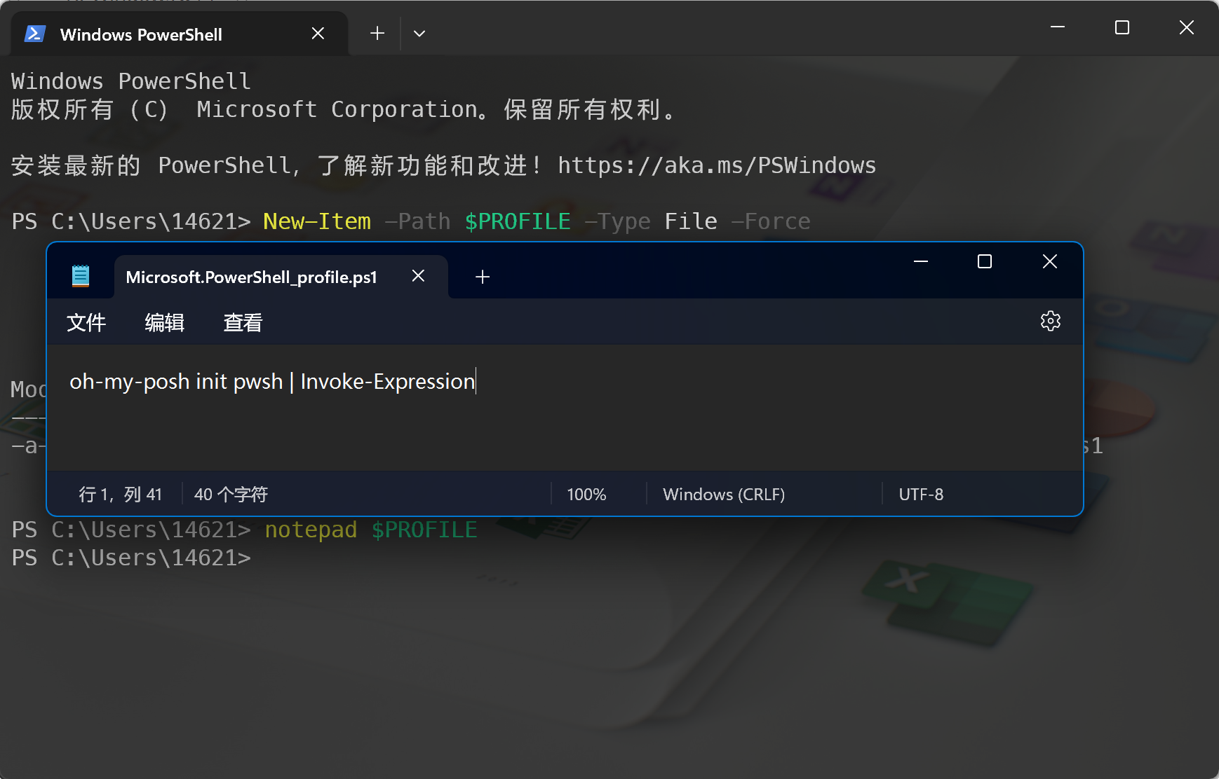 oh-my-posh init pwsh | Invoke-Expression