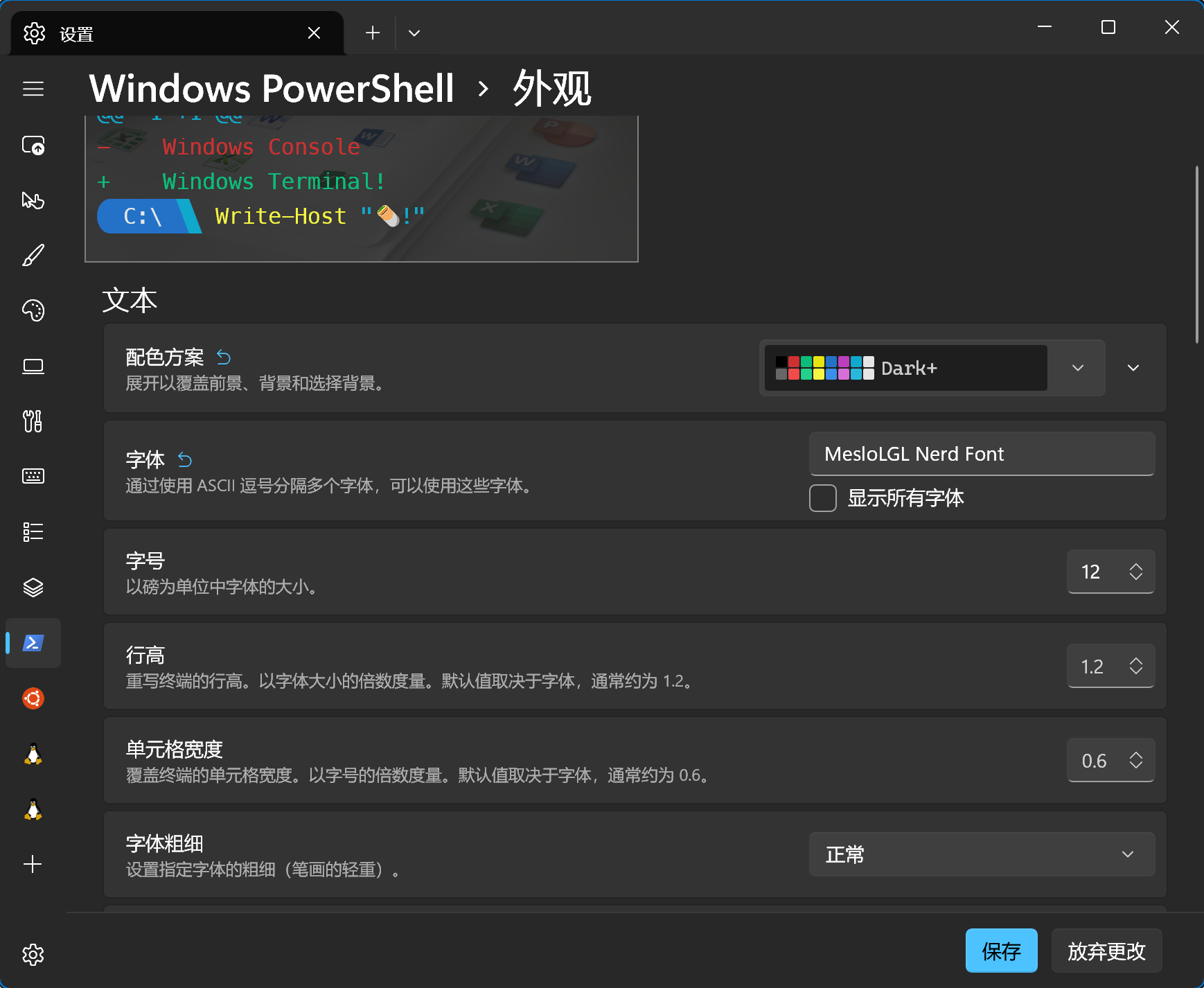 在终端设置中选择 Nerd 字体: