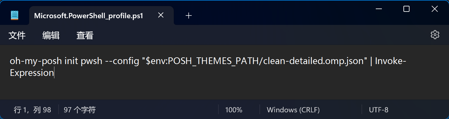 oh-my-posh init pwsh --config "$env:POSH_THEMES_PATH/clean-detailed.omp.json" | Invoke-Expression