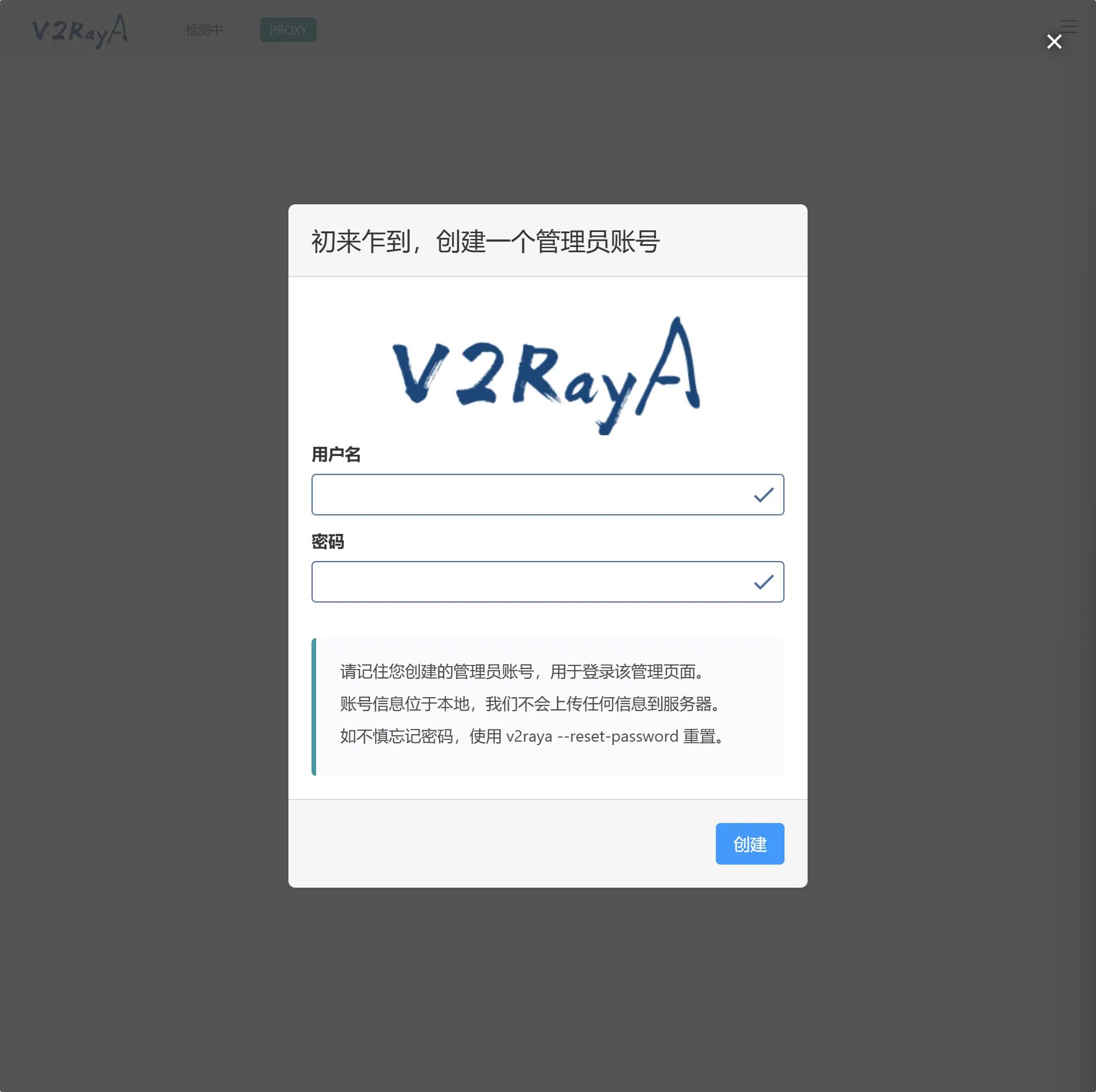 - 通过 http://ip:2017 访问管理页面,首先创建一个管 理账户。