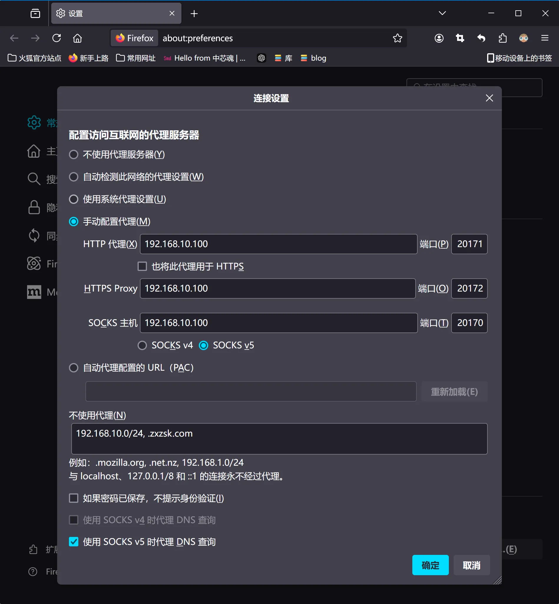 - 在【手动配置代理】栏填入代理地址和端口(20170,20171,20172)。