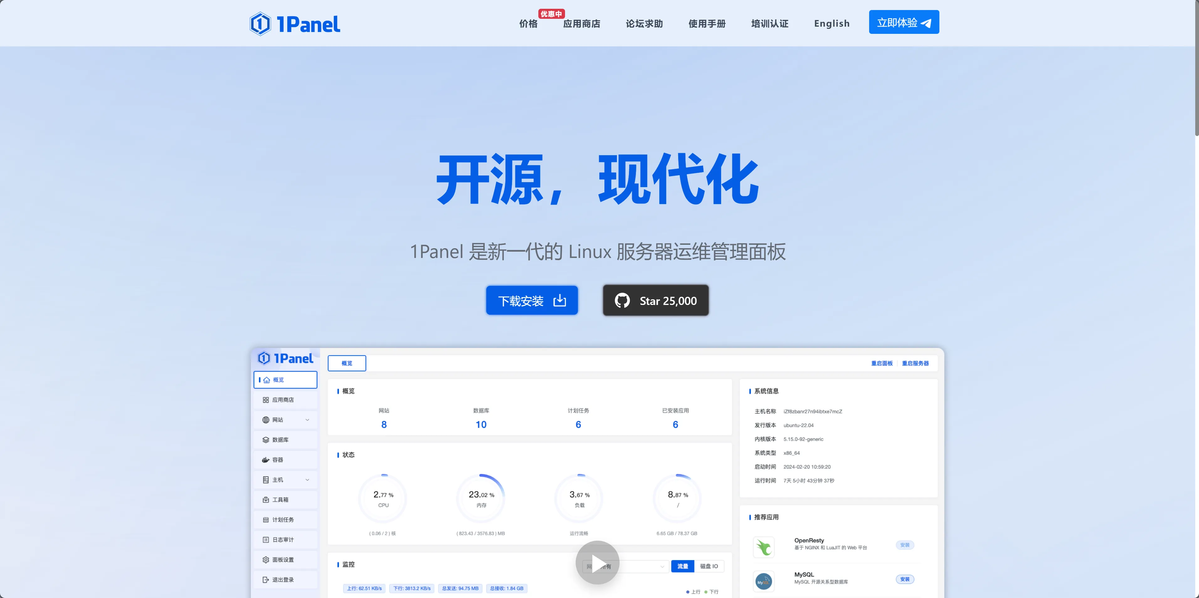1Panel - 现代化、开源的 Linux 服务器运维管理面板 - 官网