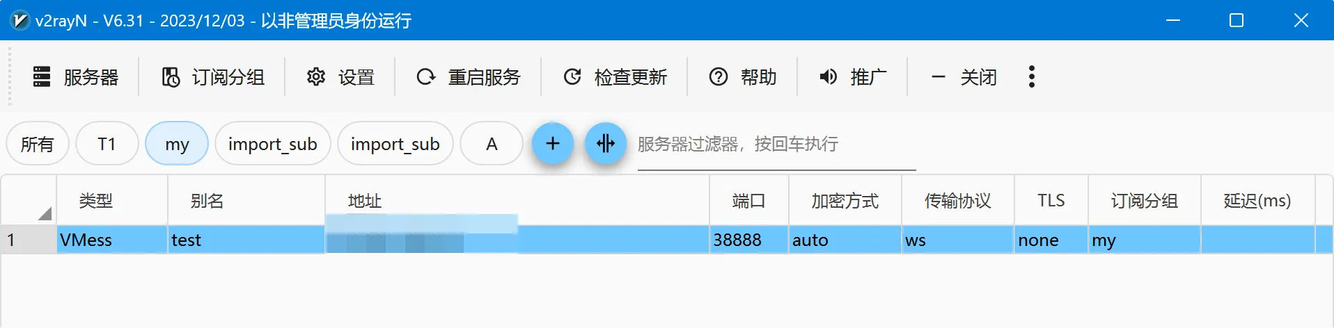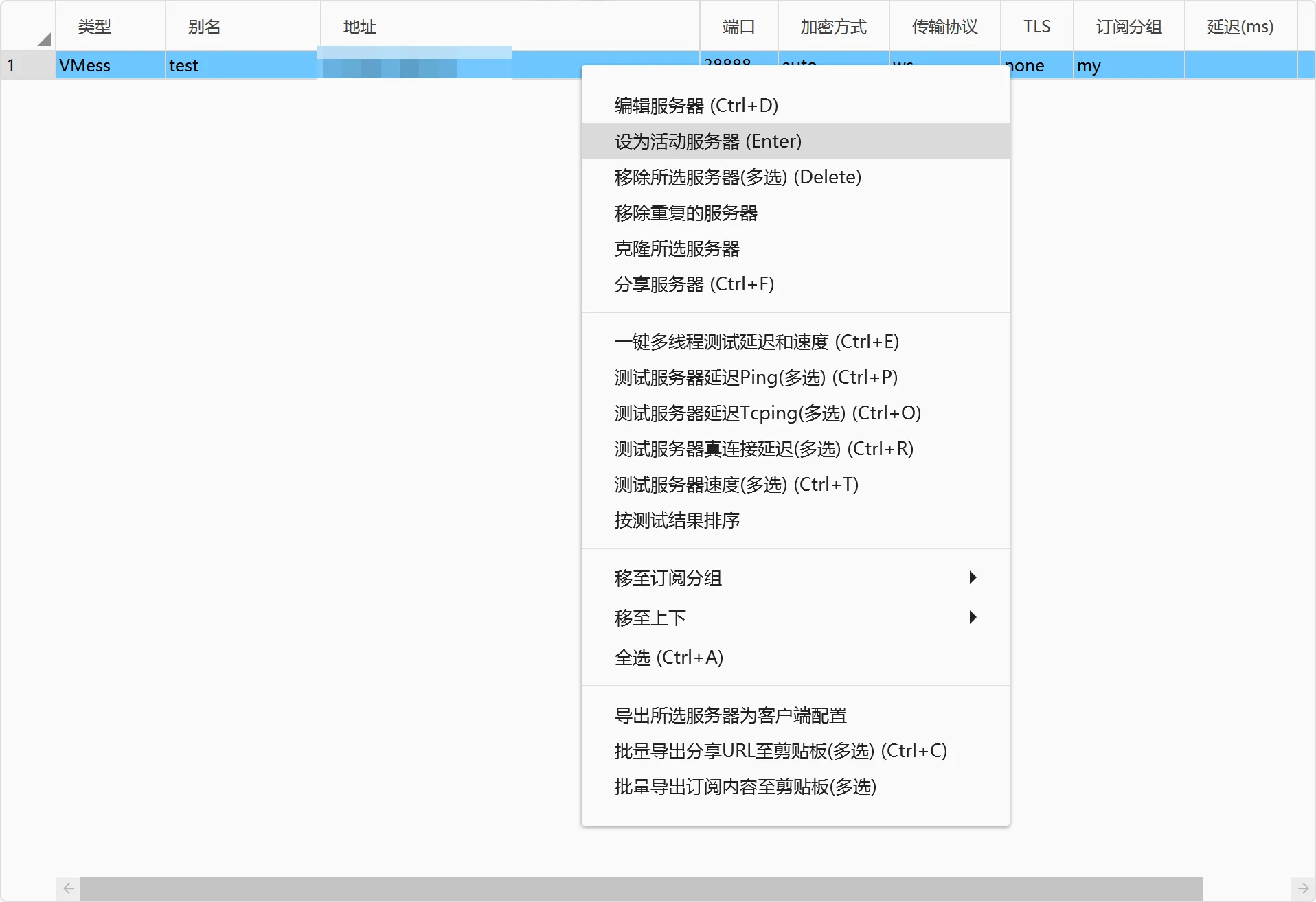 测速。出现延迟和速度,说明节点可用。