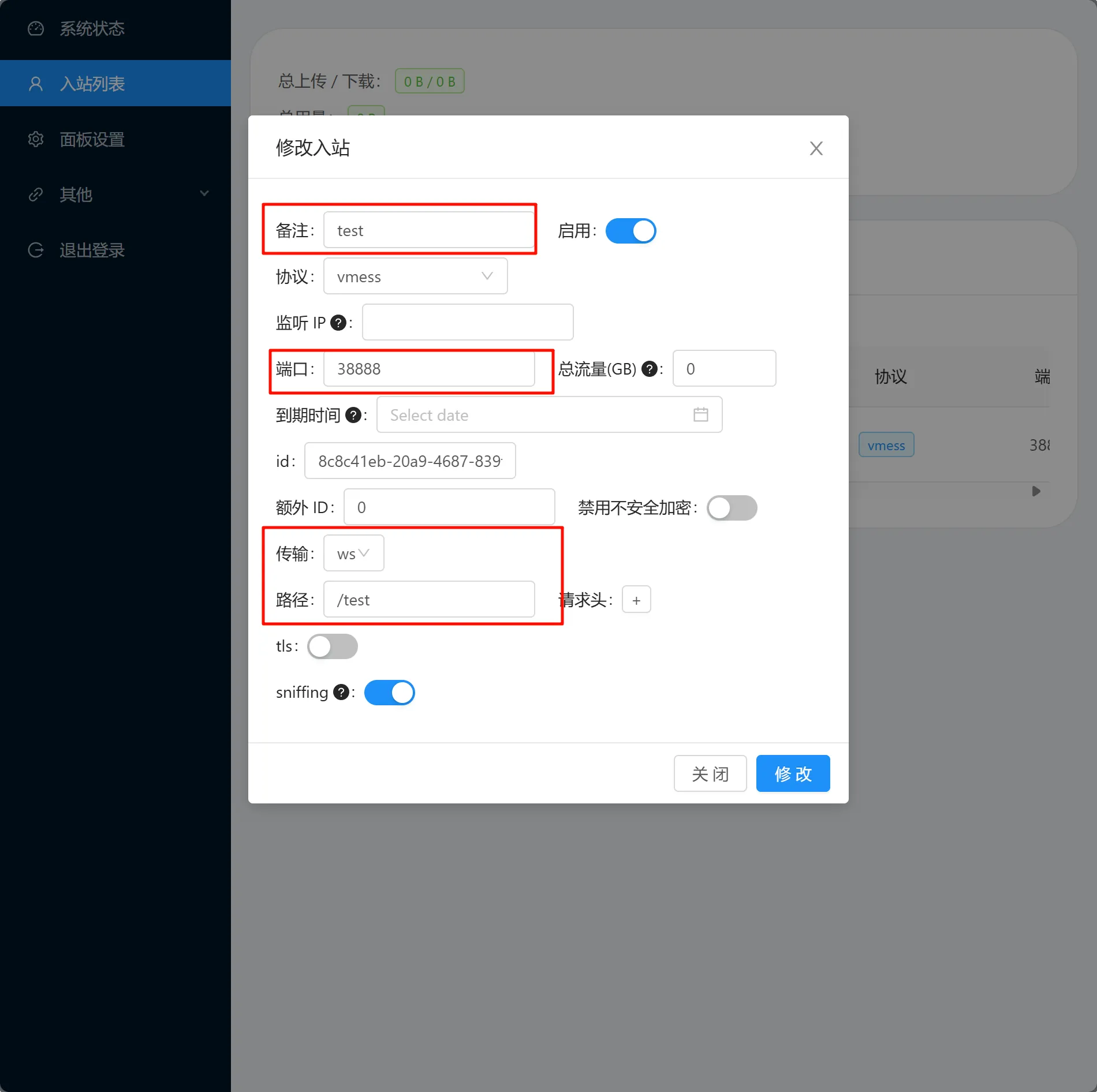 入站列表 > 添加入站